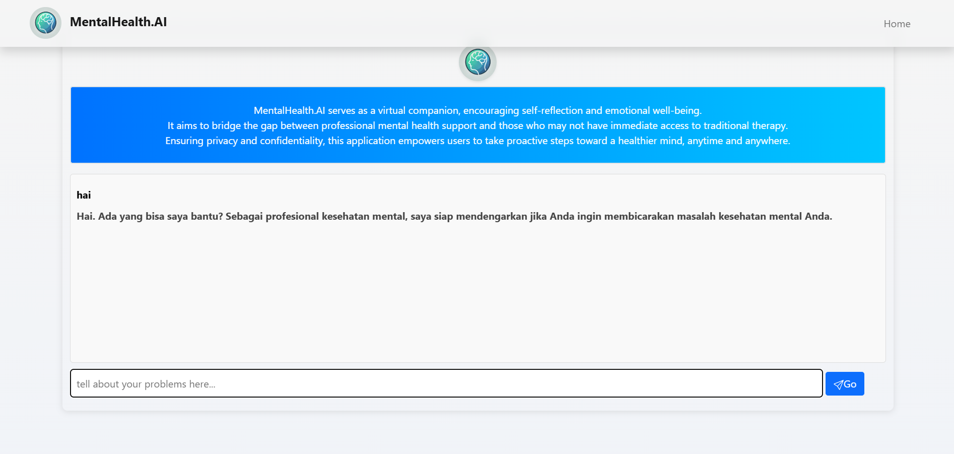 Web Application & Integration LLM Grok API. Web Application untuk konsultasi dan edukasi seputar mental health dengan mengintegrasikan API GROK AI yang sudah dilakukan pengoptimalan supaya data yang dikeluarkan hanya menjawab mengenai seputar mental health.