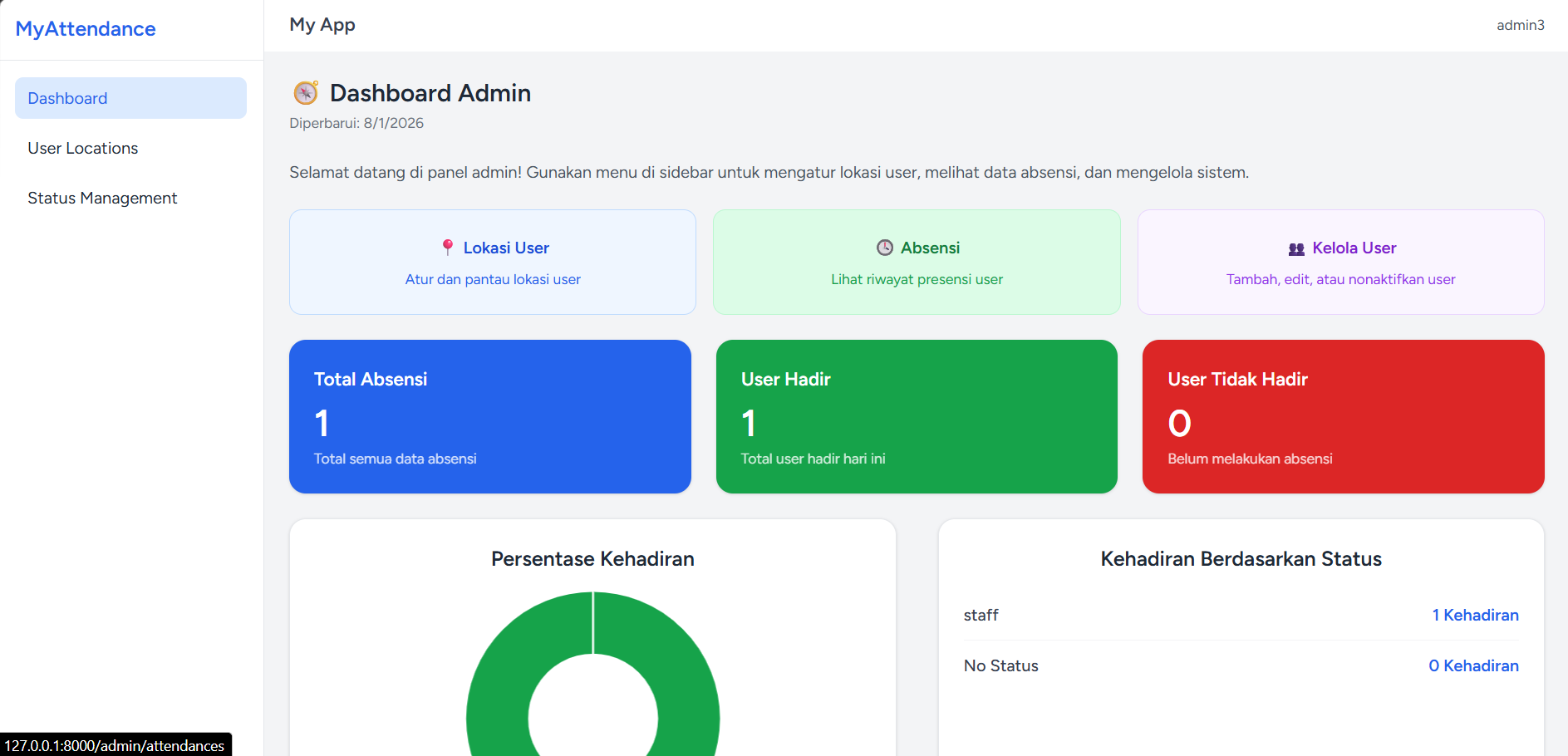 Web Application & Sistem aplikasi web presensi berbasis maps. Pengguna dapat melakukan absensi secara real-time menggunakan lokasi GPS yang sudah ditentukan titik koordinat oleh bagian admin.