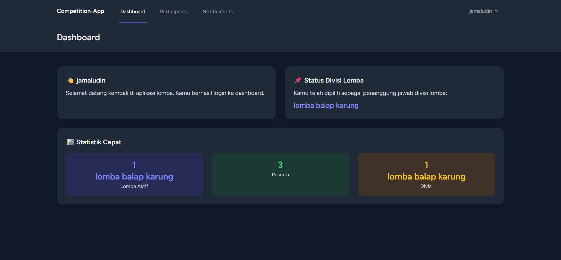 Web Application & Sistem aplikasi berbasis web manajemen panitia dan peserta untuk mengatur kegiatan lomba 17an.